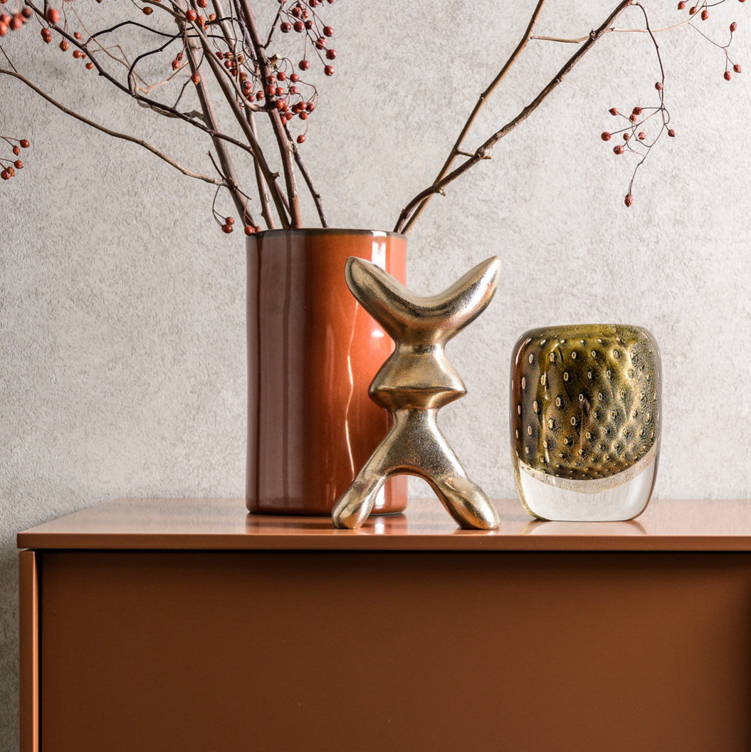 Sif is a limited edition bronze sculpture by the Icelandic sculptor Örn Porsteinsson. It’s part of a series of bronzes inspired by Norse mythology. The sculpture is available in a polished bronze and deep blue finish. It has a rounded biomorphic shape that reminisces of the spectacular Icelandic landscape, making it a charming and aesthetically pleasing statement piece.