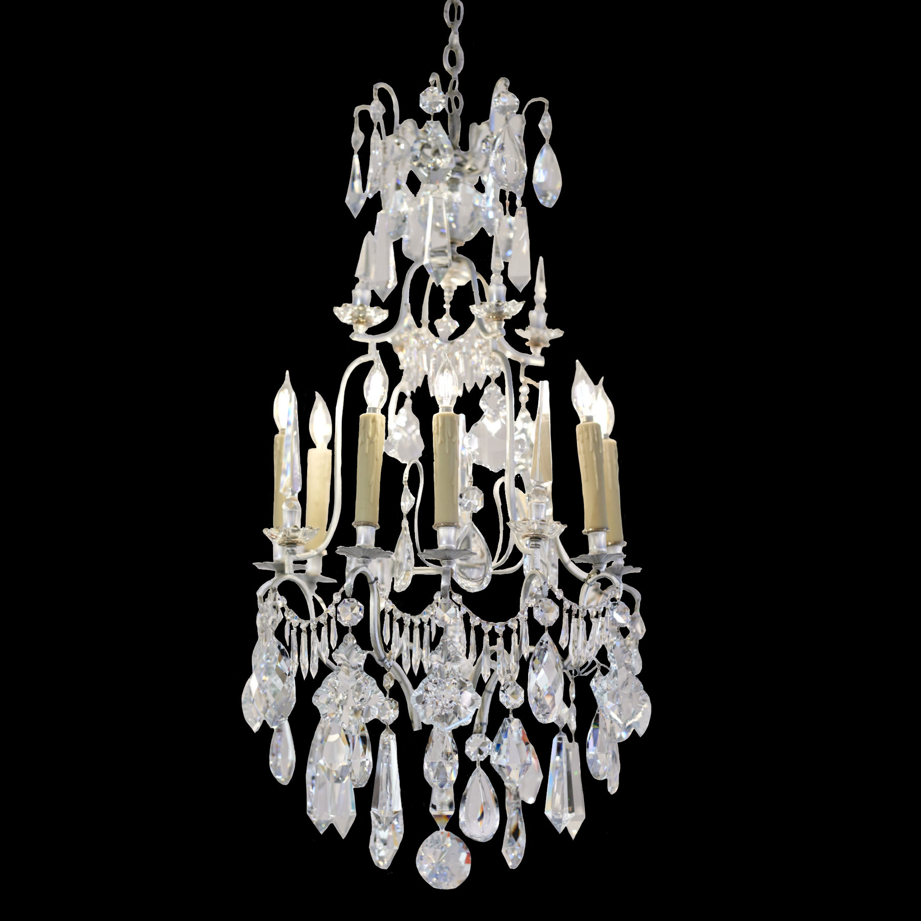 Dramatic and refined, this Versailles style chandelier captures the grandeur of classic European design with a fresh sense of elegance. Featuring 8 graceful lights arranged in a traditional silhouette, this piece is lavishly adorned with shimmering crystals that cascade effortlessly to catch and scatter the light. Distinctive pointed crystal spires rise between every two candles, creating a striking rhythm that enhances the chandelier’s symmetry and presence. More than just lighting, it’s a sculptural focal point, perfect for interiors that demand sophistication with a timeless, regal flair.